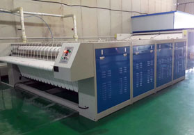 熨平機的調(diào)試常和其試運行同時進行。為此,須在設備調(diào)試時,將一定數(shù)量的、用水浸透并經(jīng)甩干烘干的布草織物備好待用。